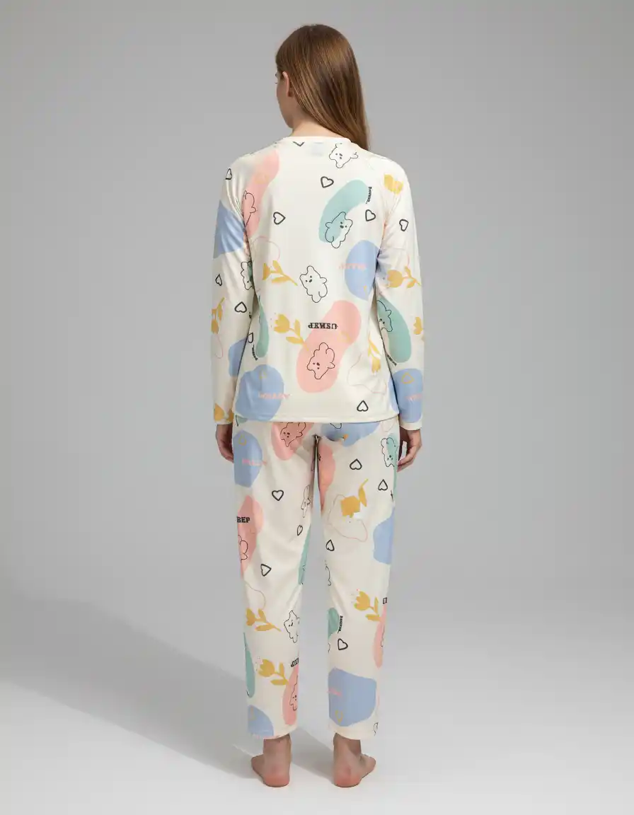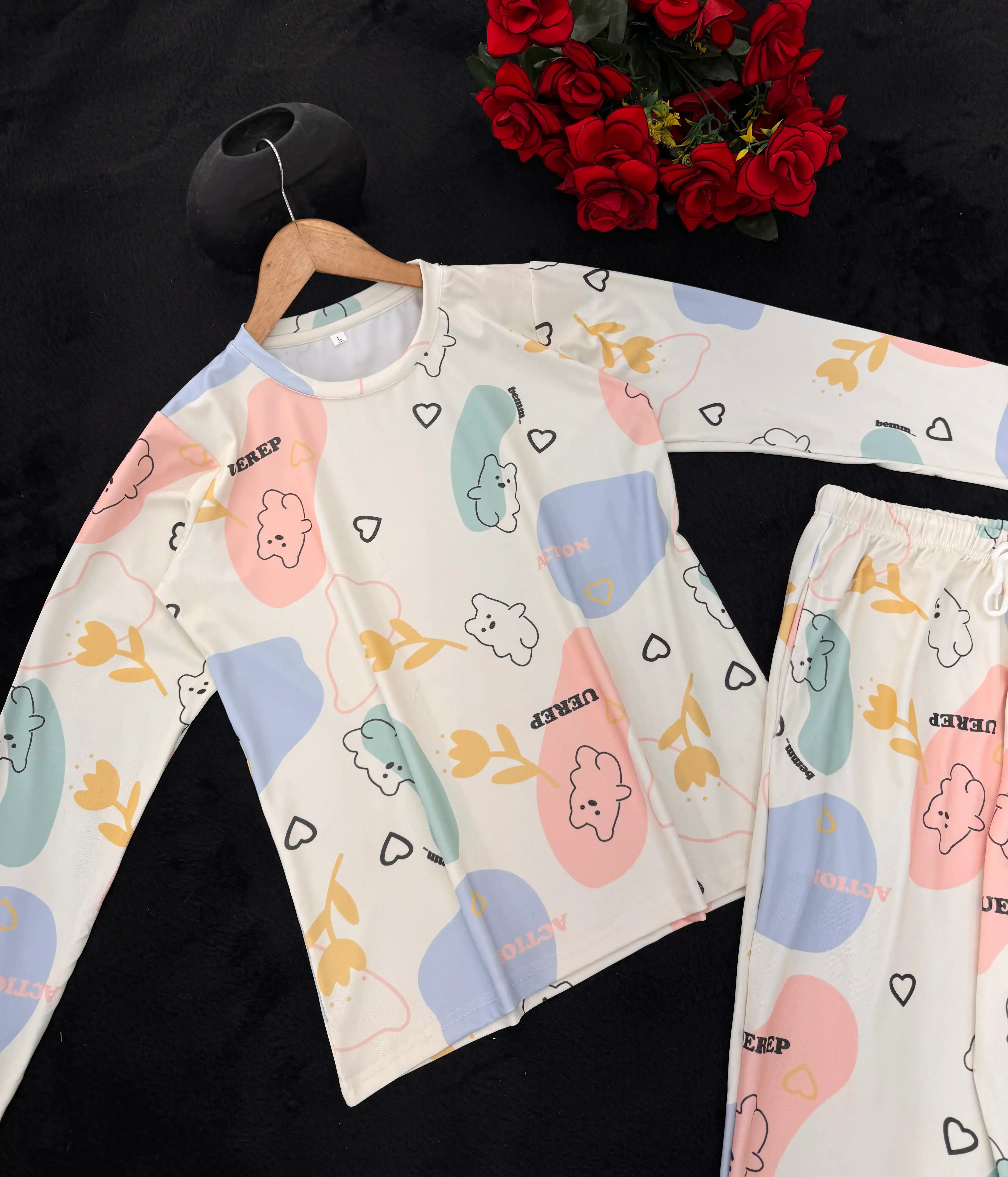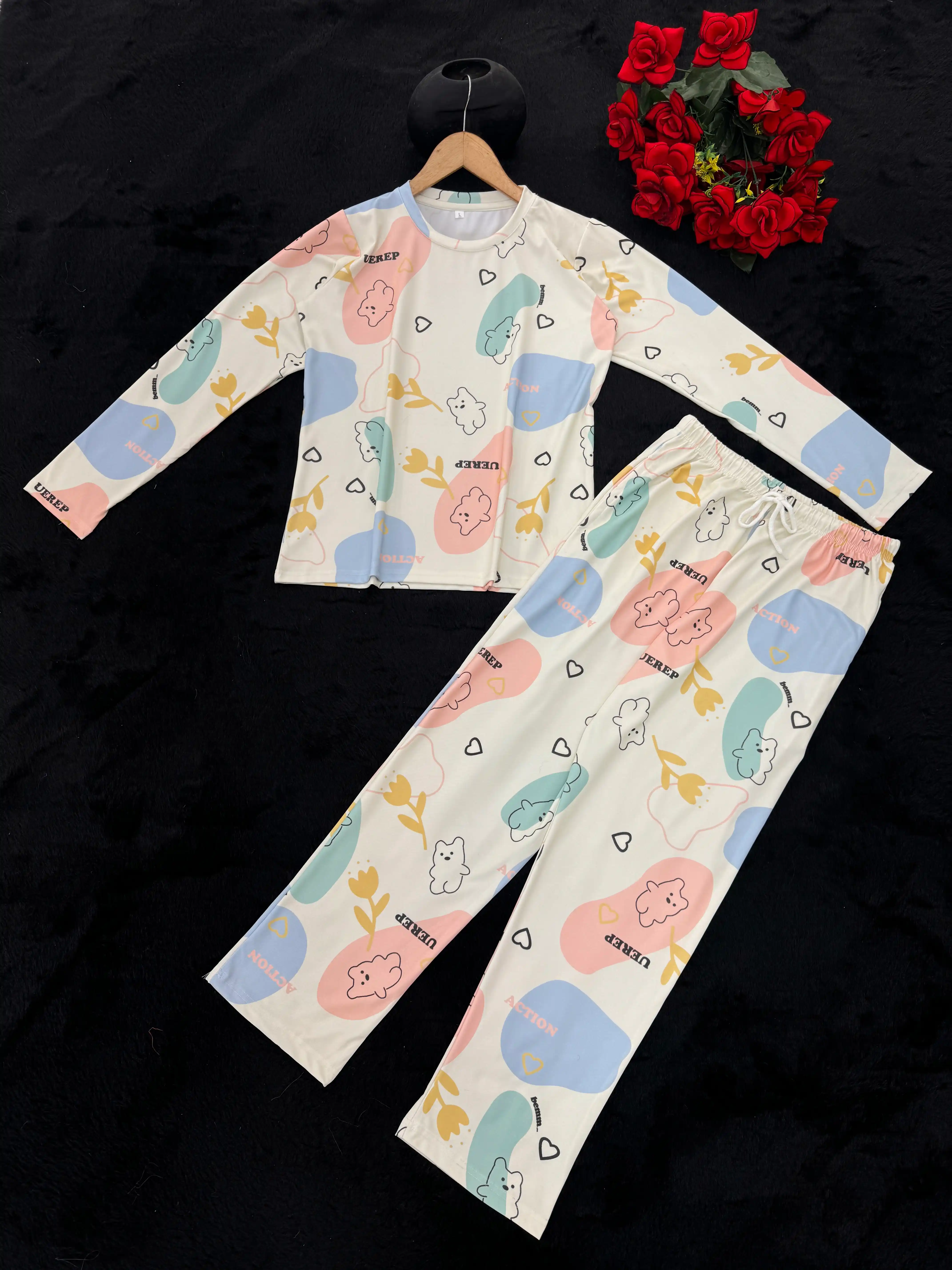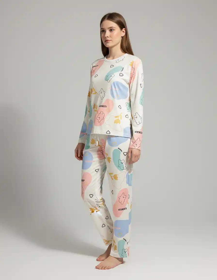 Jerry nightwear Teddy Print Top & Pyajama Full Sleeve Imported fabric Night suit Set for women and girl